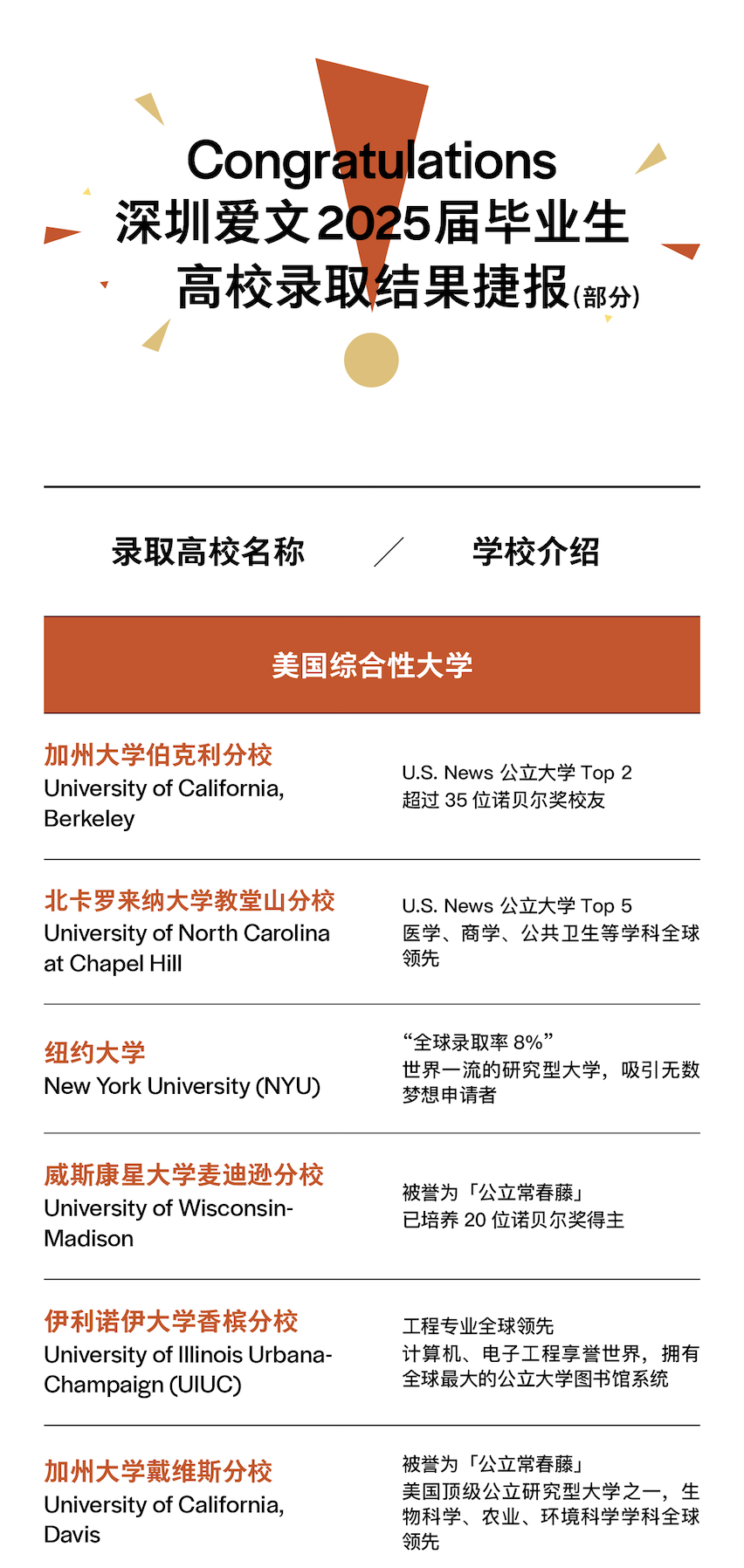 还记得去年申请季,尽管我们一再安抚,许多家庭仍难掩焦虑。如今,从加州大学到纽约大学,从都柏林到早稻田,从悉尼到多伦多,这份录取榜单,是最好的回应。此刻的喜悦,属于每一位相信爱文的你!