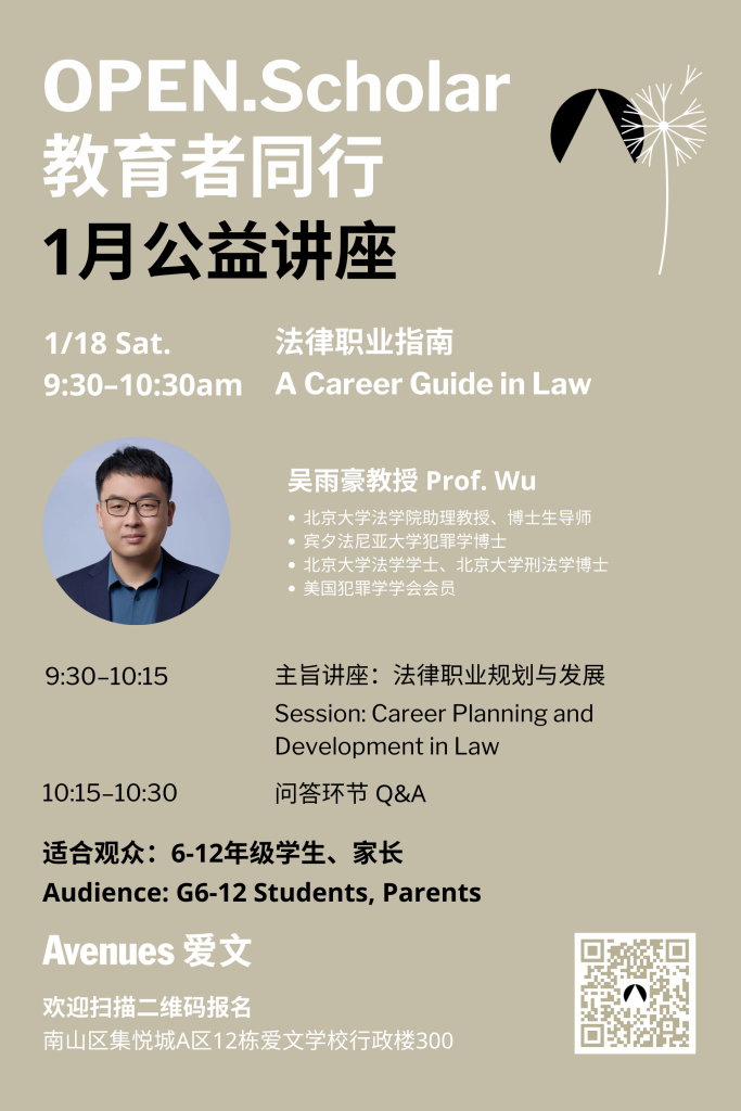 1月18日 | 爱文教育者系列讲座:法律职业指南