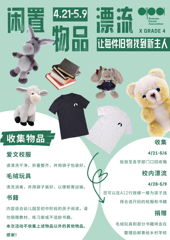 4月21日-5月6日:请将漂流物品投放至各学部门口漂流箱中;