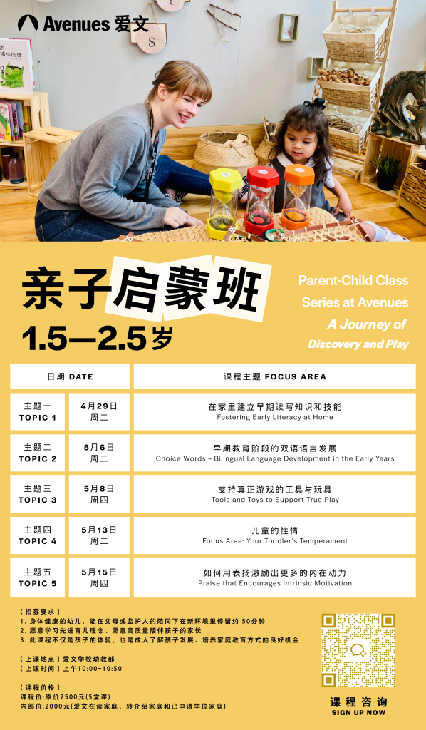 欢迎爱文在读家庭的1.5岁-2.5岁的孩子加入,请扫海报中的二维码报名或咨询。